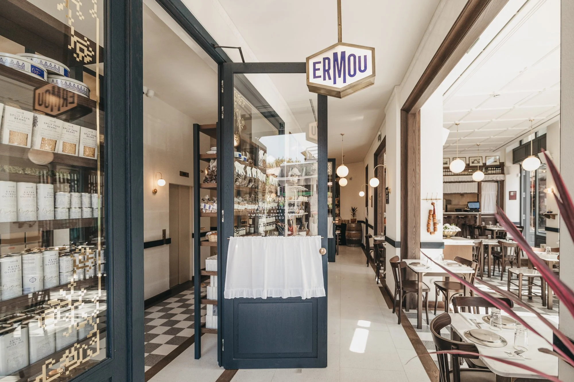 At the heart of it all is our taverna, a spot for proper Greek food, unpretentious and comforting, made with the kind of care that reminds you of family tables and shared plates. Upstairs, just eleven rooms wrap around a courtyard where mornings start slow and nights end even slower. And for those who love bringing pieces of a place back home, there’s the Ergon Originals store—filled with carefully chosen Greek products that are more about connection than souvenirs.