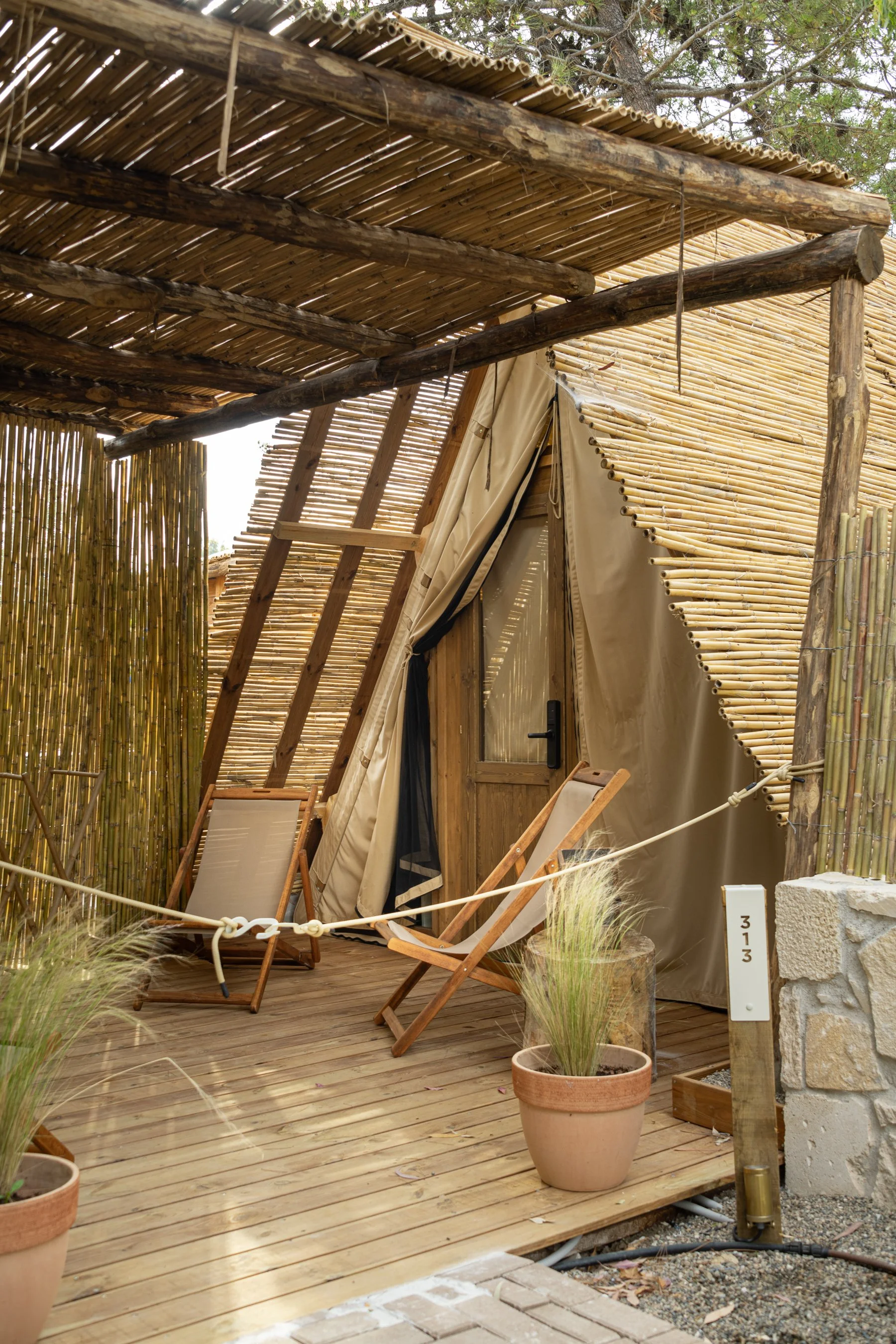 Live the epitome of outdoor luxury with our tent duo, perfect for a couple/friends stay just in the heart of nature. Two tents sharing a patio, are wrapped in stable outdoor canvas covered with sturdy wood, adorned with rustic details, creating the perfect outdoor setting. Take a deep breath, relax under the open sky rainfall shower, take a moment to read your book and admire your surroundings. With all the amenities of a traditional room and a total connection to nature, this is the ultimate outdoor lifestyle experience, you had been craving a long time now.